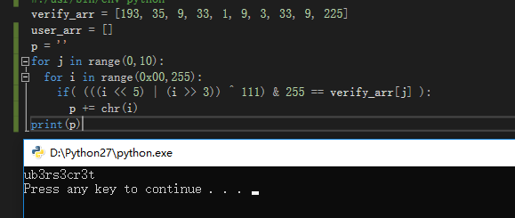 2.假码通过 ((ord(char) << 5) | (ord(char) >> 3)) ^ 111) & 255 运算后符合verify_arr的内容