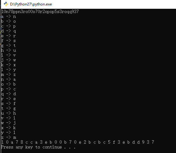 所以我们只需要将替换后的字母表输出出来,然后对着修正就好了