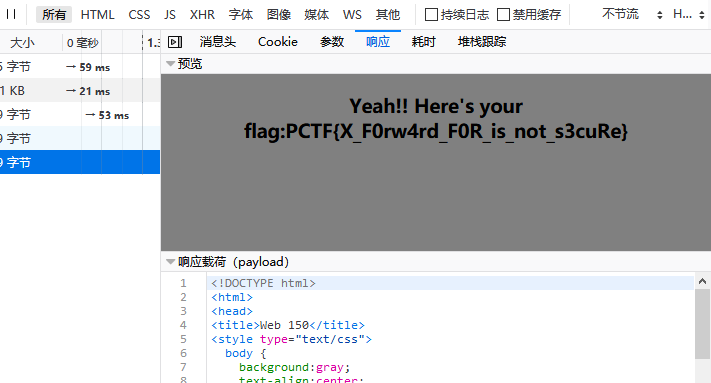 得到flag:PCTF{X_F0rw4rd_F0R_is_not_s3cuRe}