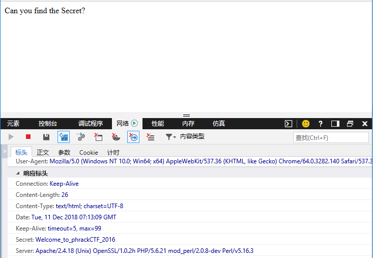 传说中的签到题 题目入口:http://web.jarvisoj.com:32776/ Hint1: 提交格式PCTF{你发现的秘密} 打开网页,然后F12开启工具箱 发现标头有Secret: Welcome_to_phrackCTF_2016 PCTF{Welcome_to_phrackCTF_2016} 文章作者: 咲夜南梦文章链接: http://yoursite.com/2018/12/11/CTF-JarvisOJ-Web-Secret/版权声明: 本博客所有文章除特别声明外,均采用 CC BY-NC-SA 4.0 许可协议。转载请注明来自 咲夜南梦's 博客!CTF Web 打赏微信支付宝上一篇CTF-JarvisOJ-Crypto-[61dctf]bbencode下一篇CTF-JarvisOJ-Basic-Base64 相关推荐 2018-11-20CTF-JarvisOJ-Web-LOCALHOST 2018-11-20CTF-JarvisOJ-Web-Login 2018-11-22CTF-成都大学网络攻防-简单注入 2020-04-30ARM-常用汇编 2018-11-09密码学-Blowfish加密算法 2020-04-22C-Socket编程 评论