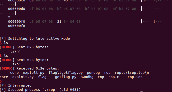 然后会看到它的ret_address是非正常的数据(其实是我们输入的字符串的一部分)