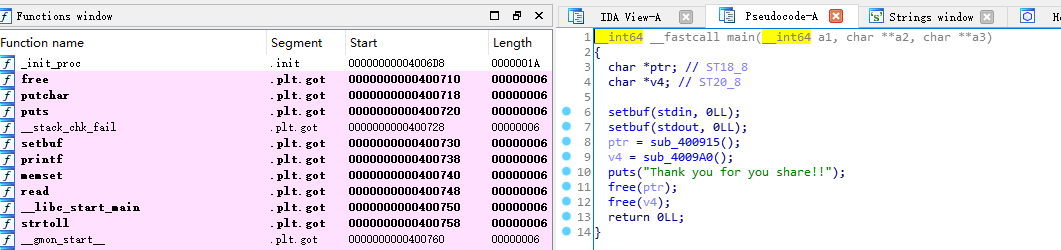 首先我们可以看到格式化输出漏洞,通过此漏洞我们可以拿到__libc_start_main的got,从而溢出libc版本,与此同时,我们可以用过该漏洞拿到canary的值