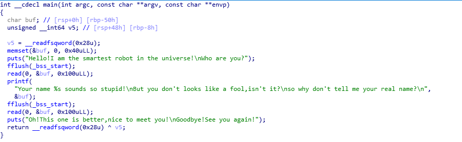 将程序导入ida,看到read printf read,这是一个很明显的漏洞,