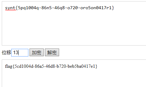 第一感觉凯撒密码,发现偏移为13时为有意义单词